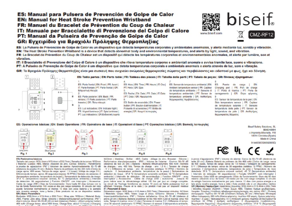 Manual de usuario de la pulsera para el golpe de calor biseif CMZ-RF12. Este manual en Español explica el funcionamiento de la pulsera.